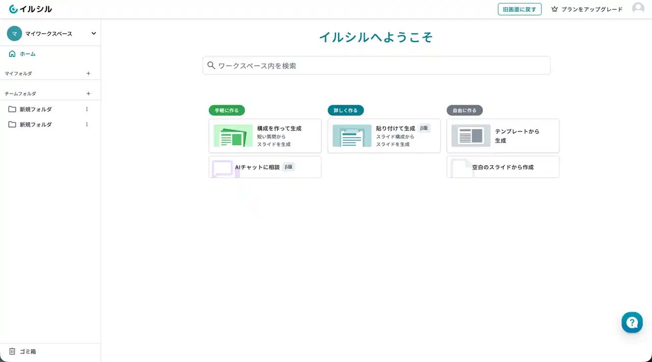 AI搭載スライド自動生成サービス「イルシル」を提供する株式会社イルシル(本社:東京都新宿区、代表取締役:宮崎有貴)は、スライド作成の入口となるHOME画面を刷新し、新HOME画面の提供を開始したことをお知らせします。 今回のアップデートでは、作り方の選択を「目的別」に整理し、初めての方でも迷わずに最適な生成方法を選べる導線へ改善しました。 |