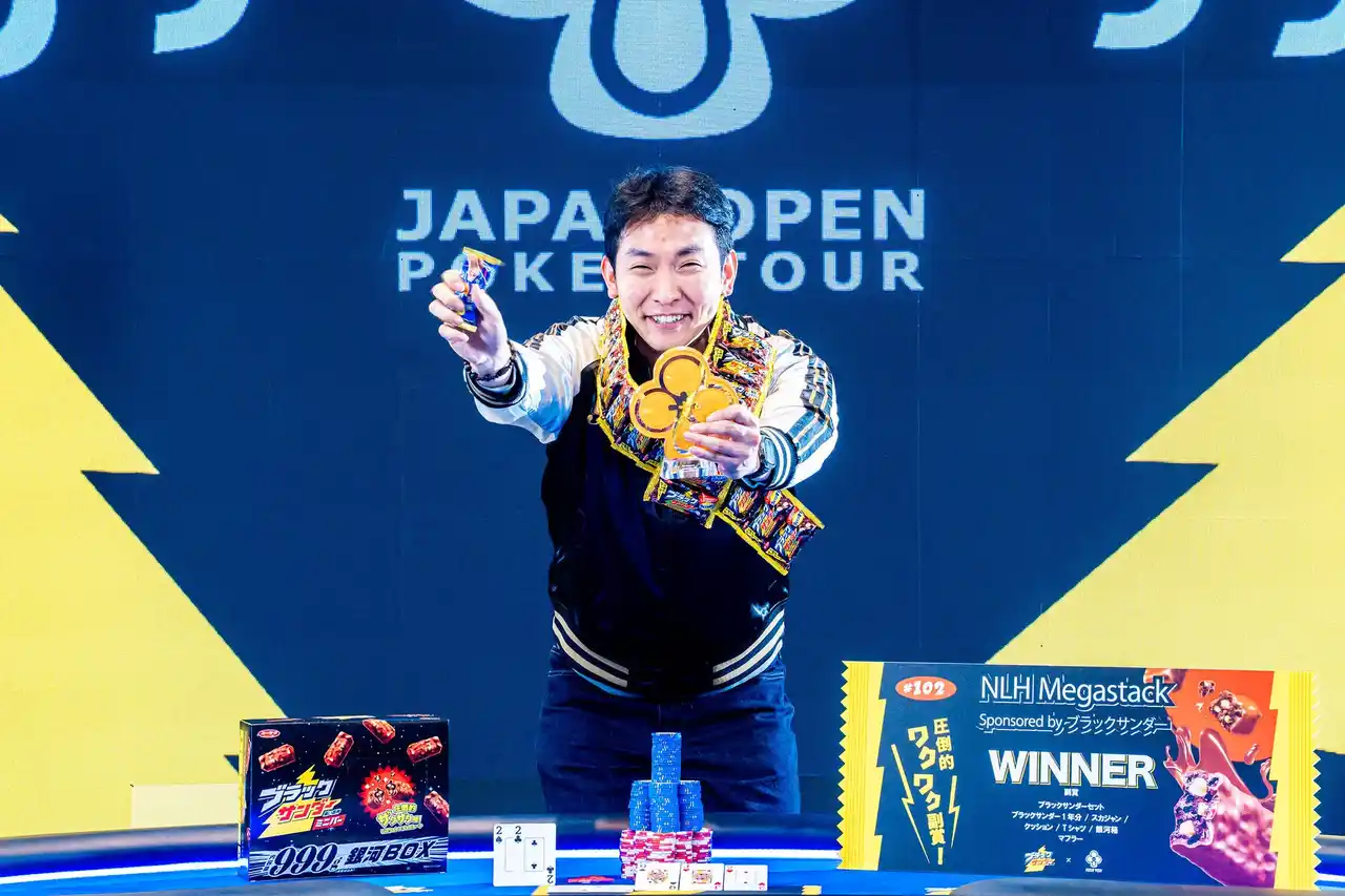 今回はブラックサンダーとの初コラボトーナメント開催し、見事優勝を果たしたのは YANG Juntae さんです。 優勝者には、ブラックサンダー1年分に加え、コラボオリジナルスカジャンなど、ブラックサンダーならではの豪華プライズが贈呈されました! |