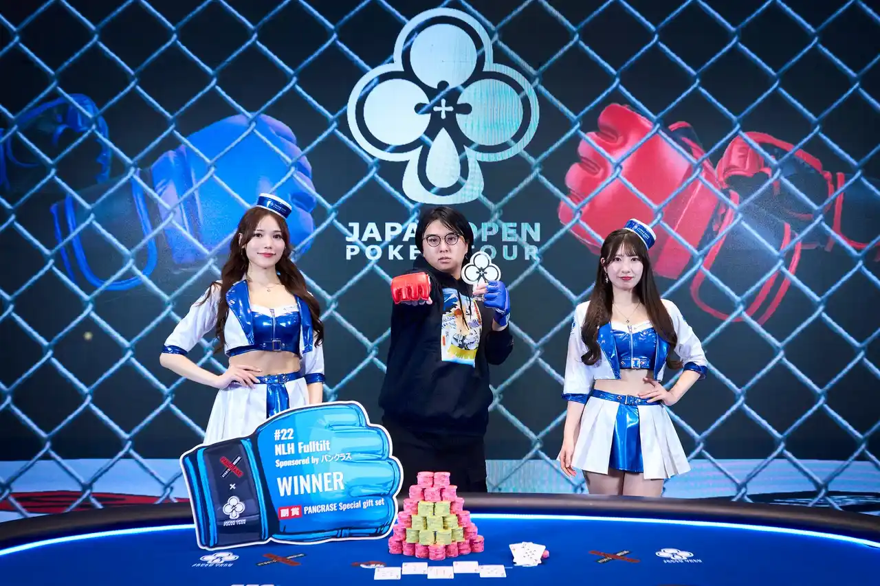 「NLH Fulltilt Sponsored by パンクラス」で見事優勝を飾ったのは 吉田龍河さん。協賛プライズとして「パンクラスギフトセット」が贈呈されました。 |