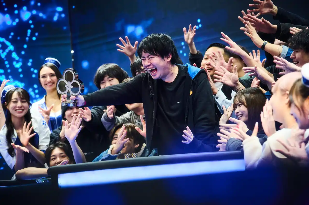 優勝が決まった瞬間、めっしさんは応援してきた仲間たちと喜びを分かち合い、Main Eventという大舞台の重みを感じさせる印象的な光景となりました。 |