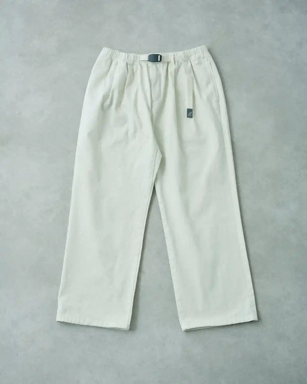 製品染めとバイオウォッシュを施すことで、ヴィンテージライクな風合いと奥行きのある表情を表現しています。シルエットは裾幅を大きく調整し、リラックス感のあるワイドフィットにアップデート。ラフさがありながらも、都会的なムードを纏うバランスに仕上げています。Gramicciのアイコンであるガゼットクロッチやウェービングベルトといった機能的ディテールはそのままに、relumeらしい洗練されたデザインアプローチを融合。