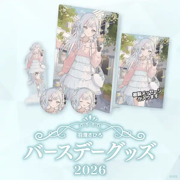 | 本日・1月20日に誕生日を迎えた羽澄さひろのバースデーグッズの詳細を公開するとともに、公式オンラインショップ「VEE Official Shop」にて受注販売を開始しました。 | |||||||||