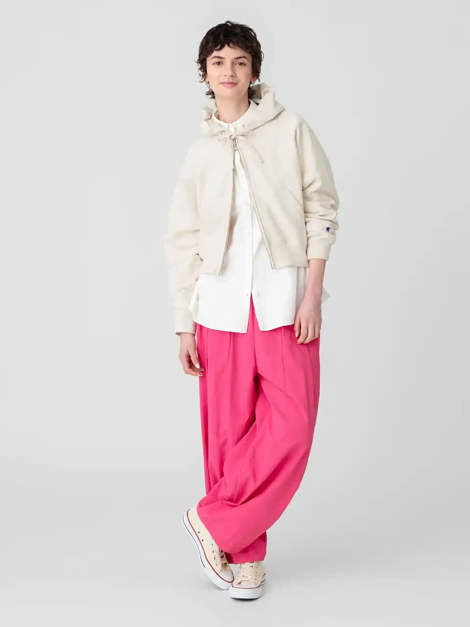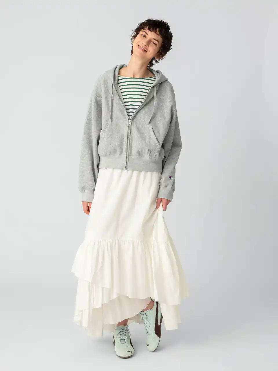 タフさとデザイン性を兼ね備えたChampion for RHCの特別なダブルジップフーディは、シンプルなデザインだからこそ「私らしい」さまざまなスタイリングを楽しめます 。 |