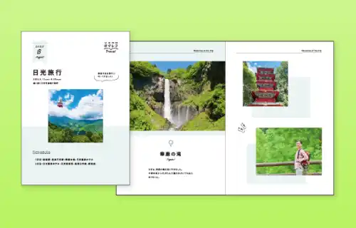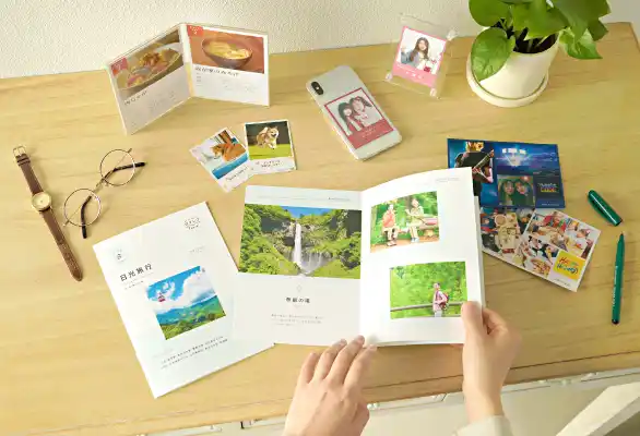 | 用紙には、やさしく温かみある風合いと、鮮やかな発色を両立させた高級紙を採用(フォトブックの場合)。印刷には高画質のデジタル印刷機を使用し、鮮やかな色再現で写真の表情を豊かに仕上げます。 | |||||||||