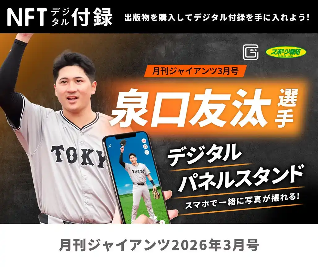 「スポーツ報知」を発行する報知新聞社(代表取締役社長・長谷川剛)は、読売巨人軍監修のファンマガジン「月刊ジャイアンツ」2026年3月号を1月23日(金)から順次、全国の書店、オンライン書店などで発売します。A4判88ページオールカラー、付録は泉口友汰選手のデジタルパネルスタンドです。書店でのお取り寄せ可能。お近くのYC(読売新聞販売店)でも注文を承ります。ECサイトの「ジャイアンツ公式オンラインストア」、「ショップ報知」、東京ドームの巨人軍直営グッズショップ「GIANTS STORE BALLPARK TOKYO」でも購入できます。 |