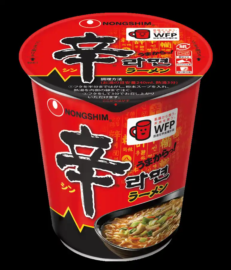韓国に本社を構える農心が製造・販売しているインスタントラーメン。1986年に韓国で発売。韓国で初めて辛さを売りにした製品として大ヒットし、現在では韓国だけでなく日本やアメリカ、ヨーロッパと世界各地で販売されています。農心は現在、辛ラーメンを含めた韓国インスタント麺市場でのシェア率が56%に達し、30年以上にわたり1位(※1)の座を維持し続けています。「Spicy Happiness In Noodles」はもっと沢山の国でたのしまれるように「辛ラーメン」に込めたブランドグローバルキャッチコピーです。 |
