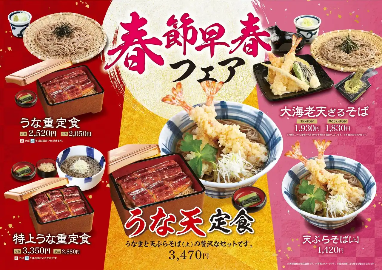 | 「自家製麺 杵屋」「信州そば処 そじ坊」では、こうした春節と早春の節目にふさわしく“少し贅沢なひととき”を楽しんでいただけるフェアメニューをご用意しました。 | ||||||||||||