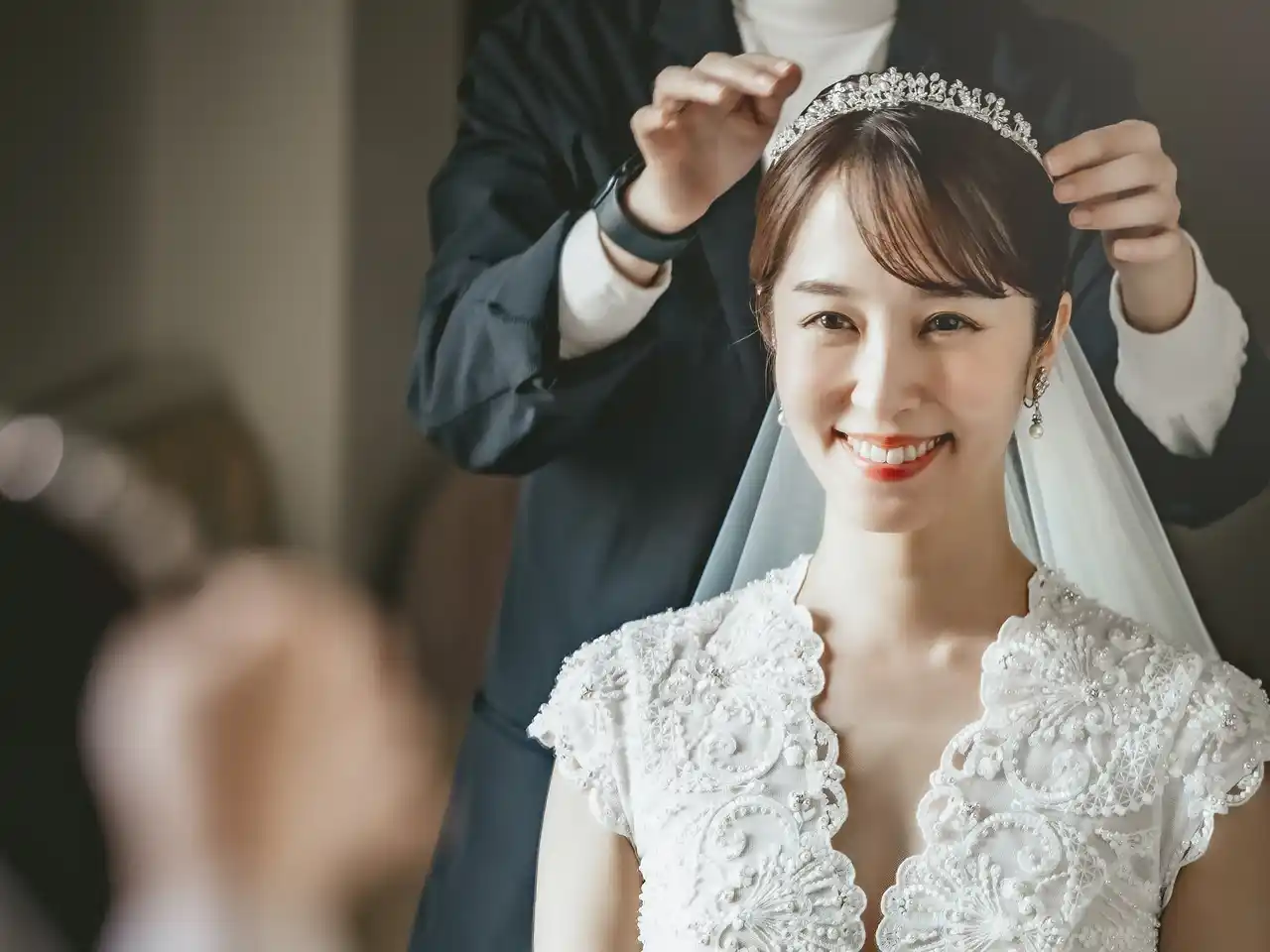 | スタイリストとヘアメイク担当がヒアリングの段階から連携し、ドレス選びからヘアメイクまでトータルでコーディネート。お顔立ちや雰囲気に合わせた統一感のあるスタイリングで、花嫁様の魅力を最大限に引き出します。 | ||||||||||||||||||||