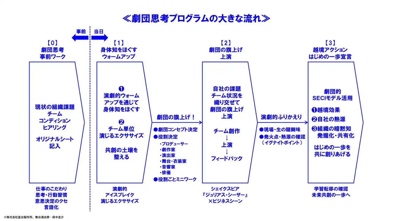 | 舞台演出家・田中圭介は共同で、組織の共創力を進化させる新しい研修プログラム『劇団思考』を開発いたしましたのでお知らせします。 | |||