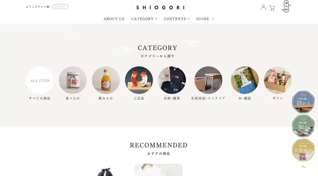 SHIOGORI MALLは、地域のモノを通じて多様なストーリーをお伝えし、 地域内外のお客様がつながり、それぞれの新たなスタートのきっかけとなるようにと、「SHIOGORI -潮垢離-」プロジェクトの一環で開設された南紀みらい株式会社が運営するオンラインショップです。 |