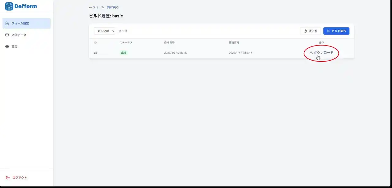 6.ビルドが完了したら「ダウンロード」を押してください。 |
