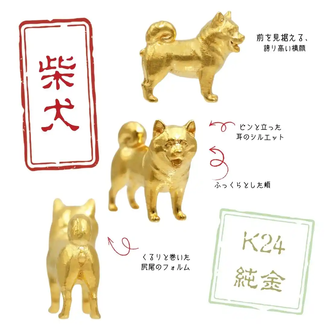 本商品は 忠誠心と家族への深い愛情を象徴する柴犬を K24 純金で精巧に表現した 約8ミリの指先サイズの純金アイテムです。 |