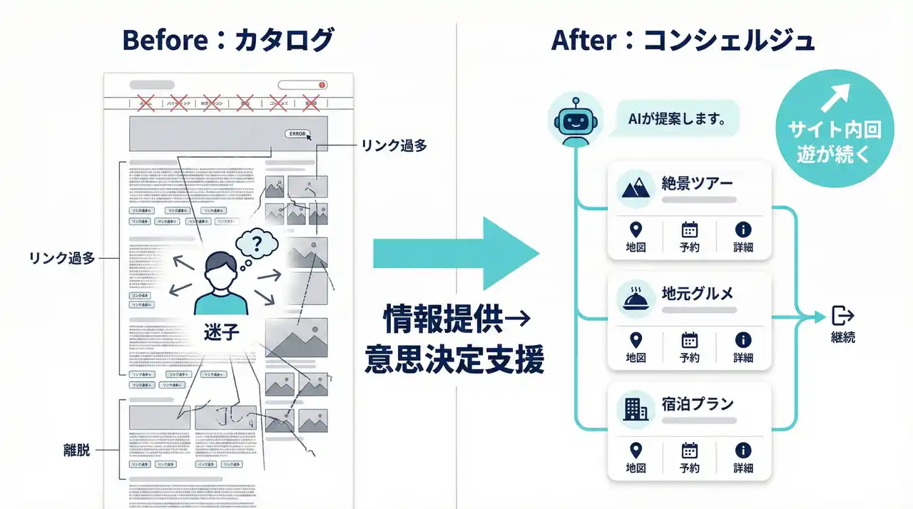 「滞在率を上げる=ページを増やす」ではなく、旅行者の“状況”に沿って意思決定を前に進める導線を作れるかが、これからの公式サイト価値を左右します。 |