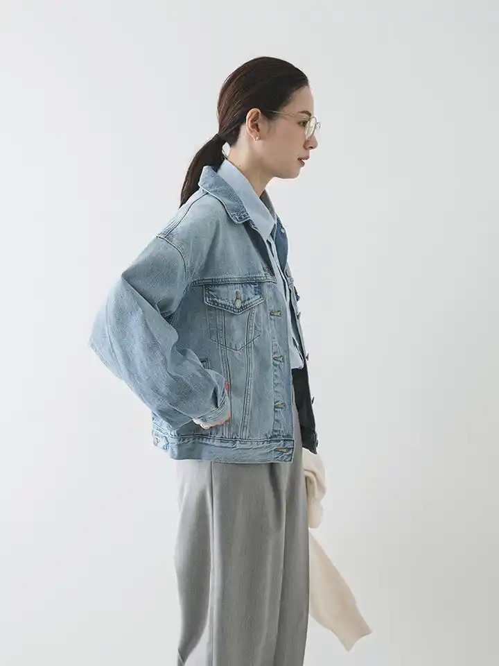 ボディラインに沿った程よくコンパクトなシルエットで、現代のストリートスタイルにも馴染むタイムレスな一着。 通年使いやすいミッドオンスの綿100%デニムを使用しており、着込むほどに肌に馴染む本物志向の質感です。 これからの季節、ホワイトパンツやチノパンツ、ワンピースなど、どんなアイテムとも相性抜群な万能カラーです。 |