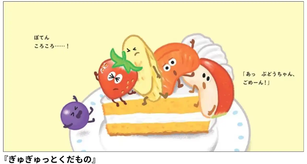 赤ちゃんが大好きな食べ物と動物をテーマに『ぎゅぎゅっとくだもの』と『かさになるよ』、2冊同時刊行です。
