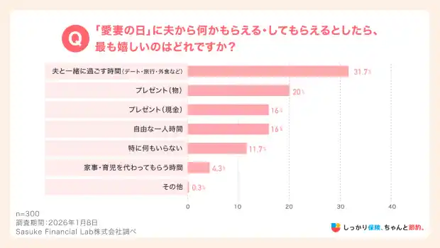 「愛妻の日」に妻が夫から欲しいもの、1位は「夫との時間(31.7%)」に!2位の「プレゼント(物)(20.0%)」に大きく差をつける |