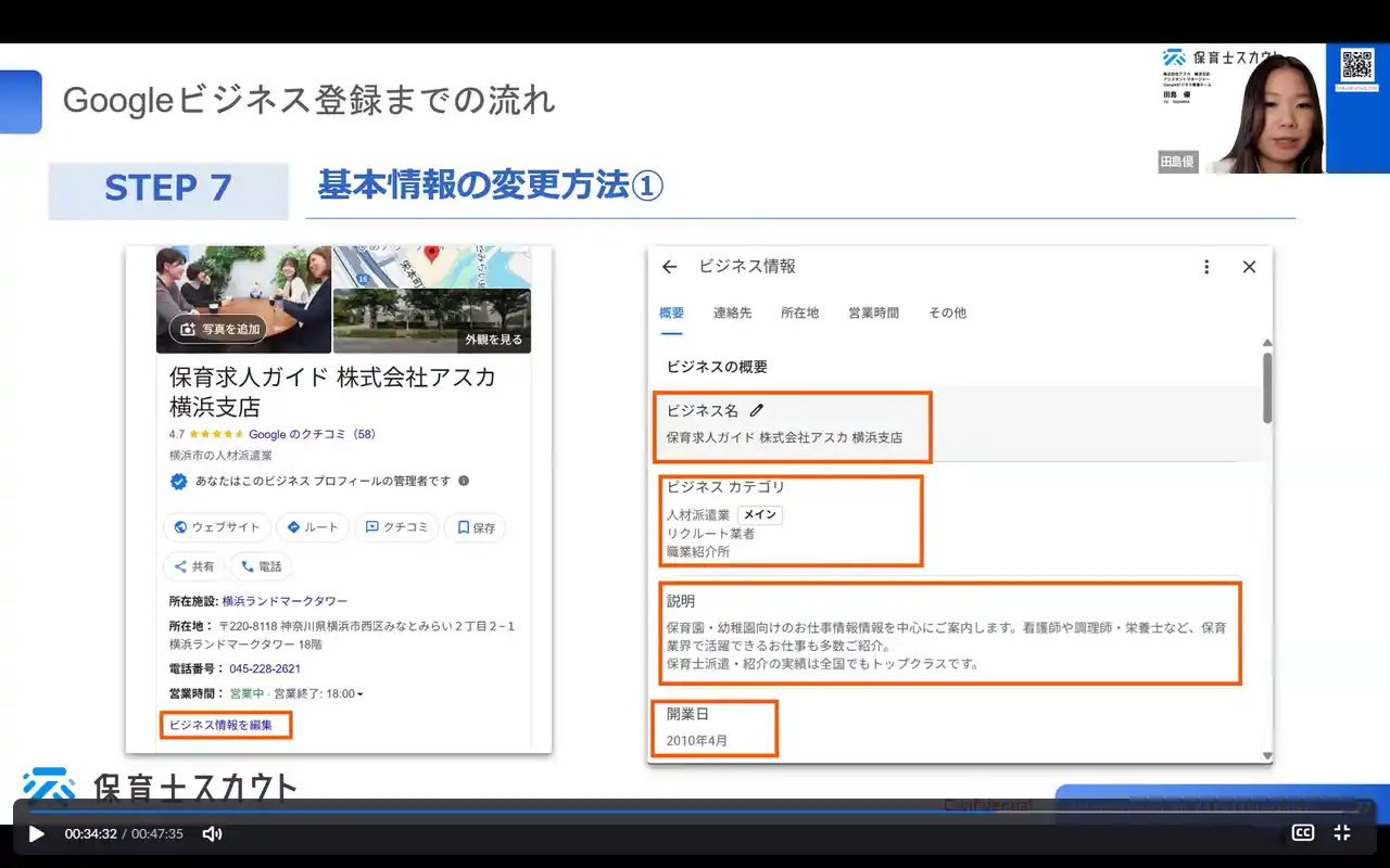| 当日は、株式会社アスカ 横浜支店の田島優との対談形式で、入園希望者や職員応募数の増加につながった具体的なポイントを分かりやすく解説します。また、Googleクチコミ数が全国で2,000件を超えるアスカの取り組みをもとに、高評価クチコミを集めるための考え方や、Googleマップページの作成・運用の基本についても紹介。採用活動にとどまらず、地域に愛される園づくりのヒントが詰まった内容です。 | |||||||||||