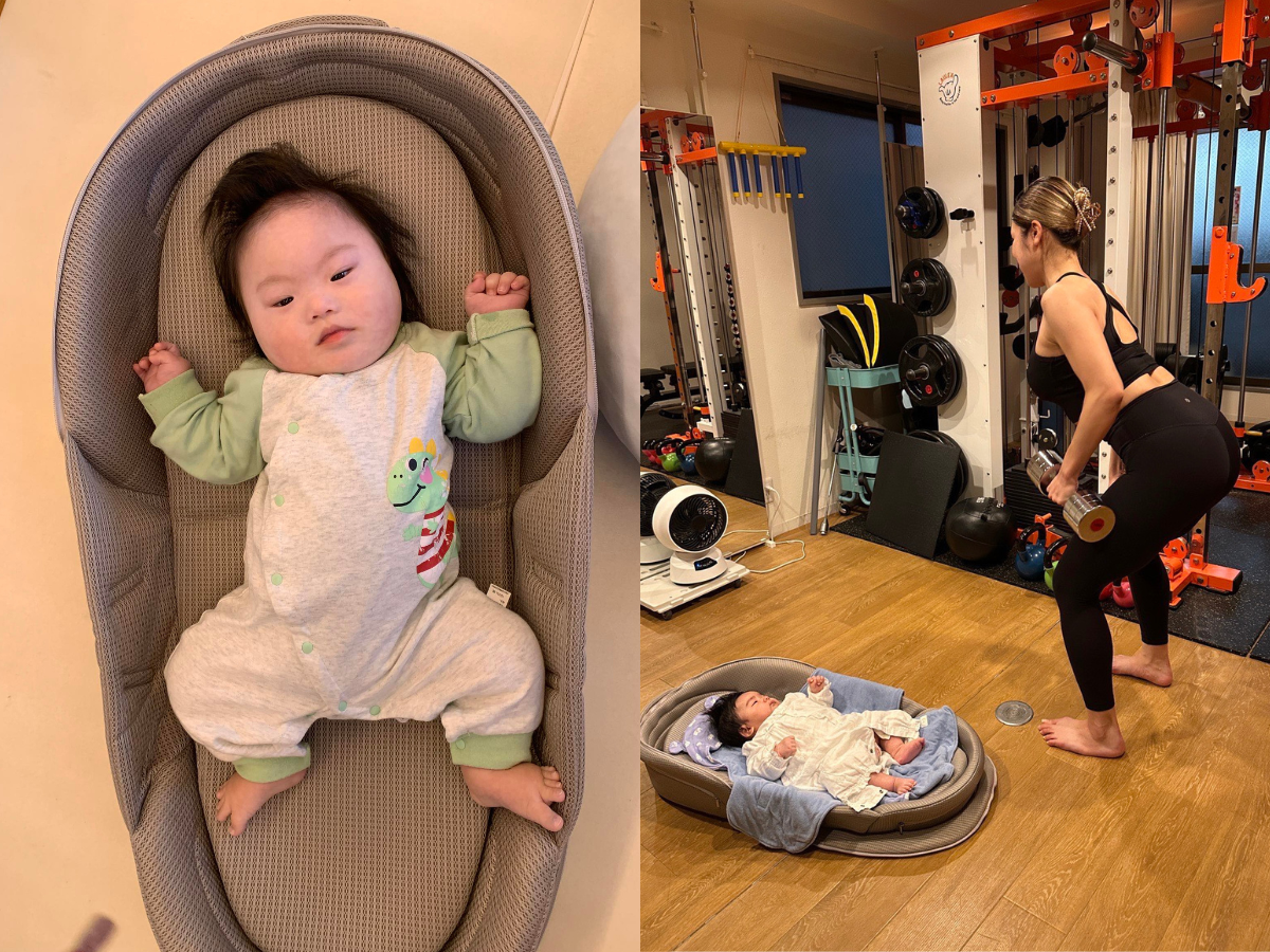 「赤ちゃんを横で見守りながら運動できる環境に活用。“安心してトレーニングに集中できる”と高い支持。」