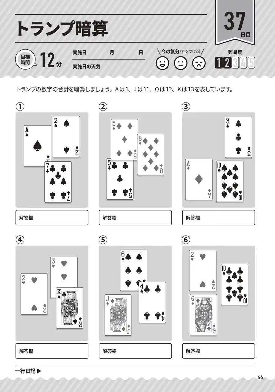 | 各問題には解く「目標時間」を設けることによって脳トレ効果を高められます。 | ||||||||||||
