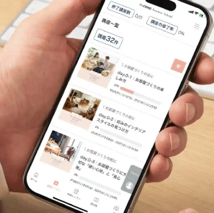 その「インテリアのセオリー」を、動画で分かりやすく、隙間時間に学べるようにしたのが、今回開校する「リセノインテリアスクール」です。 |