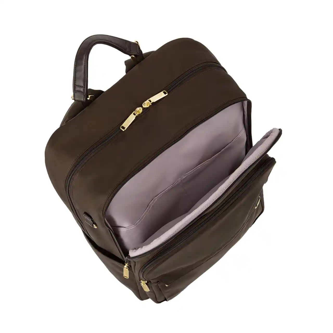 3.内装には、ボトルを立てて収納できるドリンクホルダーや小物整理に便利なポケットなど、充実したポケットを備えます。 |