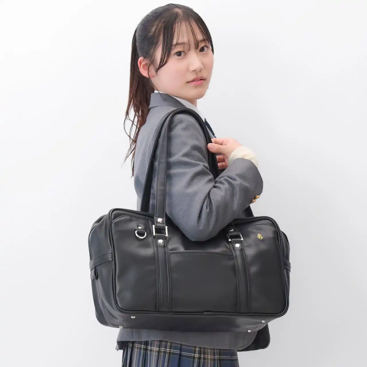 「スクールバッグ」は、架空の学校“私立ジュエルナ学園” の指定バッグをテーマにデザインした、なめらかな質感と上質なツヤ感に仕上げた通学トートバッグです。制服コーデに合わせて選べる4色展開です。 |