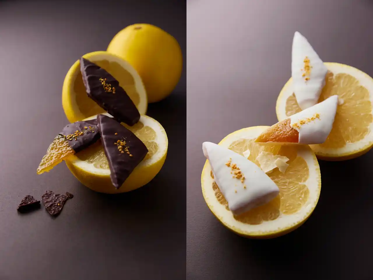 ホワイトチョコレートタイプは、すっきりとした口どけの奥に広がるカカオの香りが、瑞季の繊細な風味と調和。果実感とミルキーさのバランスがとれた柑橘ピールショコラに仕上げました。食べ比べはもちろん、気分に合わせて楽しめるのも魅力。自分用にも贈り物としても、2種揃えて味わっていただきたいオランジェットです。 |