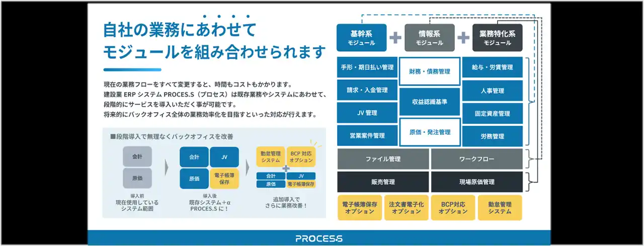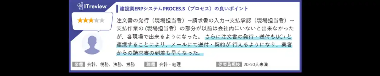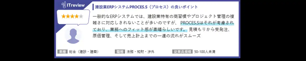 建設業ERPシステム「PROCES.S(プロセス)」のレビューページはこちらです。 |