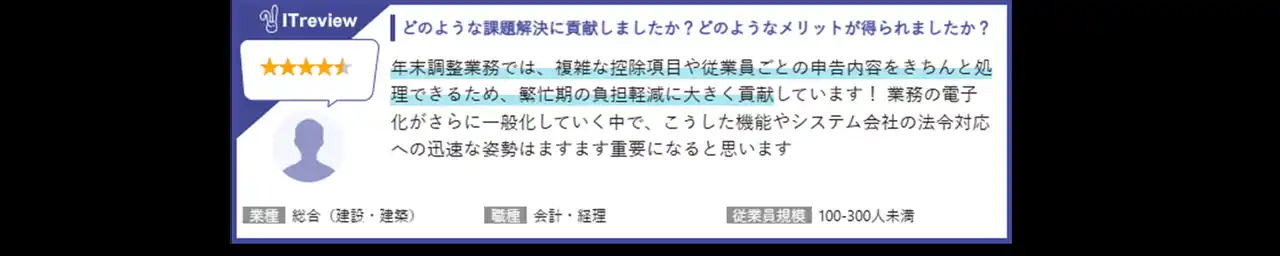 ITreviewのLeaderは、多くの利用者から支持を得ている証であり、名誉ある称号です。 レビューでは、担当営業・SEの手厚いサポート、データの一元管理による経理担当者の業務負担軽減などが評価されています。 |