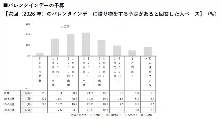 バレンタインデーの贈り物の予算は「2,000~3,000円未満(21.9%)」が最多。 |