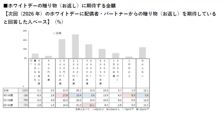 ■5割以上が「ホワイトデーの贈り物(お返し)を期待していない」と回答。配偶者・パートナーからの贈り物(お返し)に期待する金額は若年層ほど低く、いわゆる "倍返し" への期待は薄れつつある
