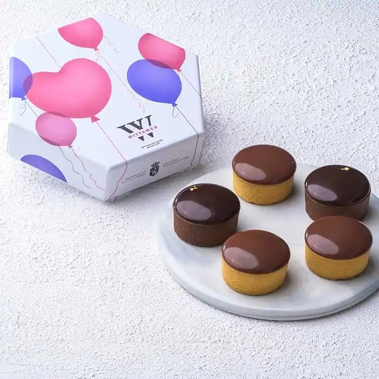 ベルギーの首都ブリュッセルで1910年創業の老舗洋菓子店。軽やかなチョコレートクリームとキャラメルやコンフィチュールをとじ込めたタルトです。 |