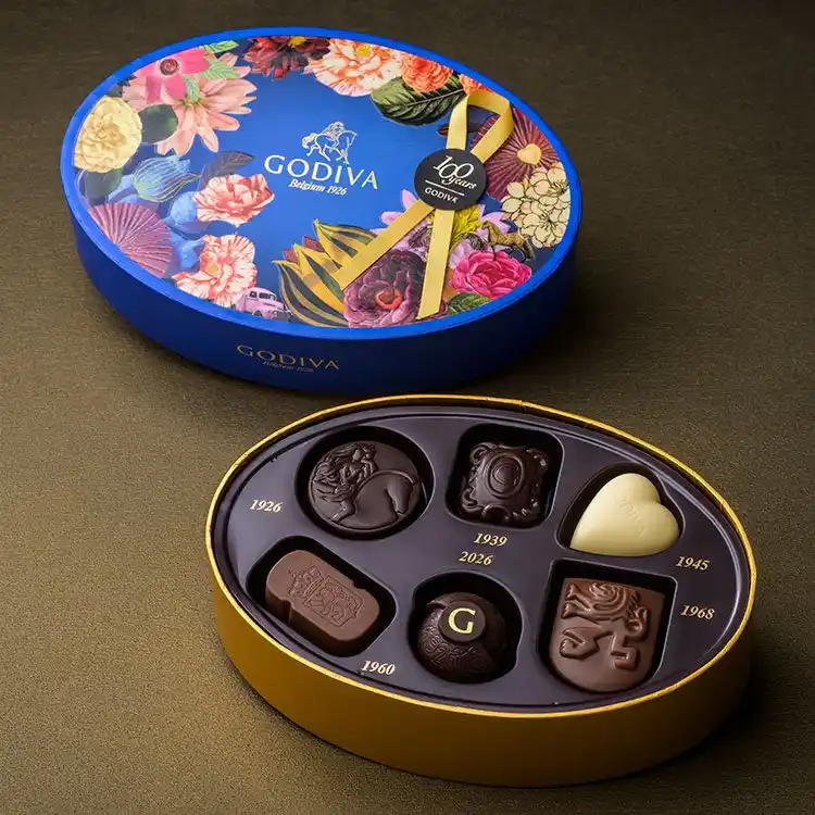 100周年を迎えるゴディバが送り出す、ベルギー王室御用達として伝統の継承と共に革新を重ねてきた100年のアーカイブショコラコレクション。時代を超えて愛され続けるチョコレートから100周年記念粒までを、シックで華麗なパッケージに詰め合わせました。 |