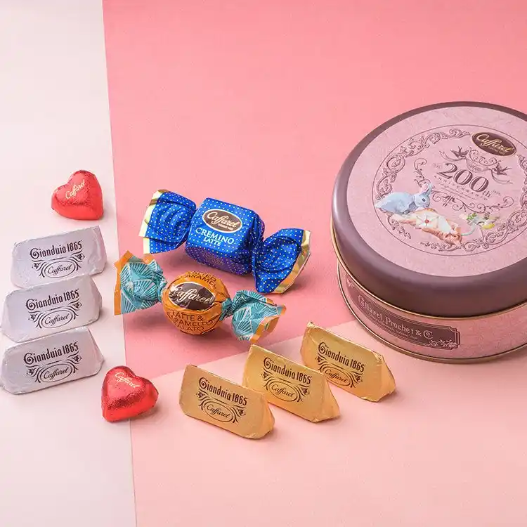 トリノの地図を描いた200周年記念デザイン缶が登場。カファレルを代表するジャンドゥーヤを含む10粒をアソートしました。 |
