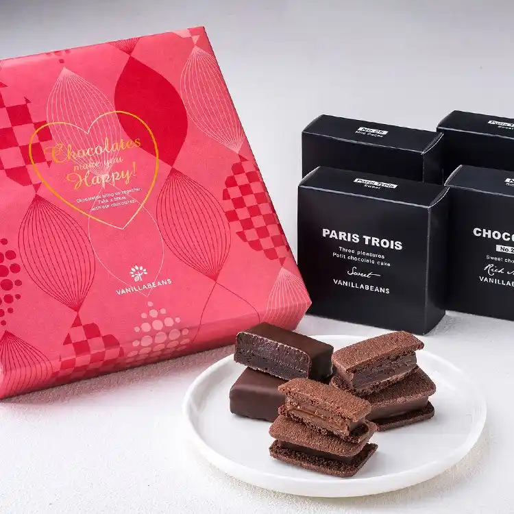 芳醇な後味が感じられるビターフレーバー「ショーコラ・マイルドカカオ」、優しい甘さのミルクチョコレート「ショーコラ・リッチミルク」、3層からなる濃厚プチショコラケーキ「パリトロ・スイート」のバレンタイン限定パッケージです。 |
