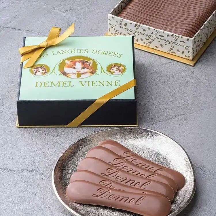 世界中で愛され続けているオーストリア・ウィーンの老舗菓子補。猫の舌をモチーフにした愛らしいチョコレートはカカオの風味となめらかな口どけが楽しめるミルクチョコレートです。 |