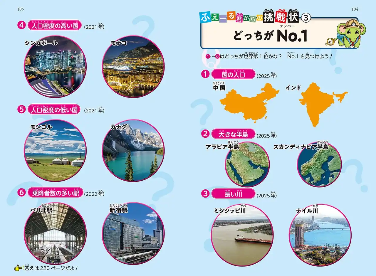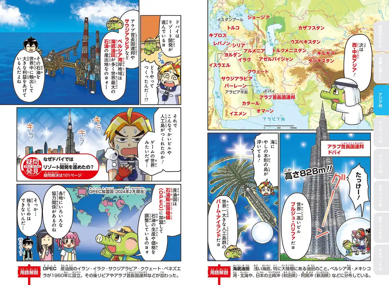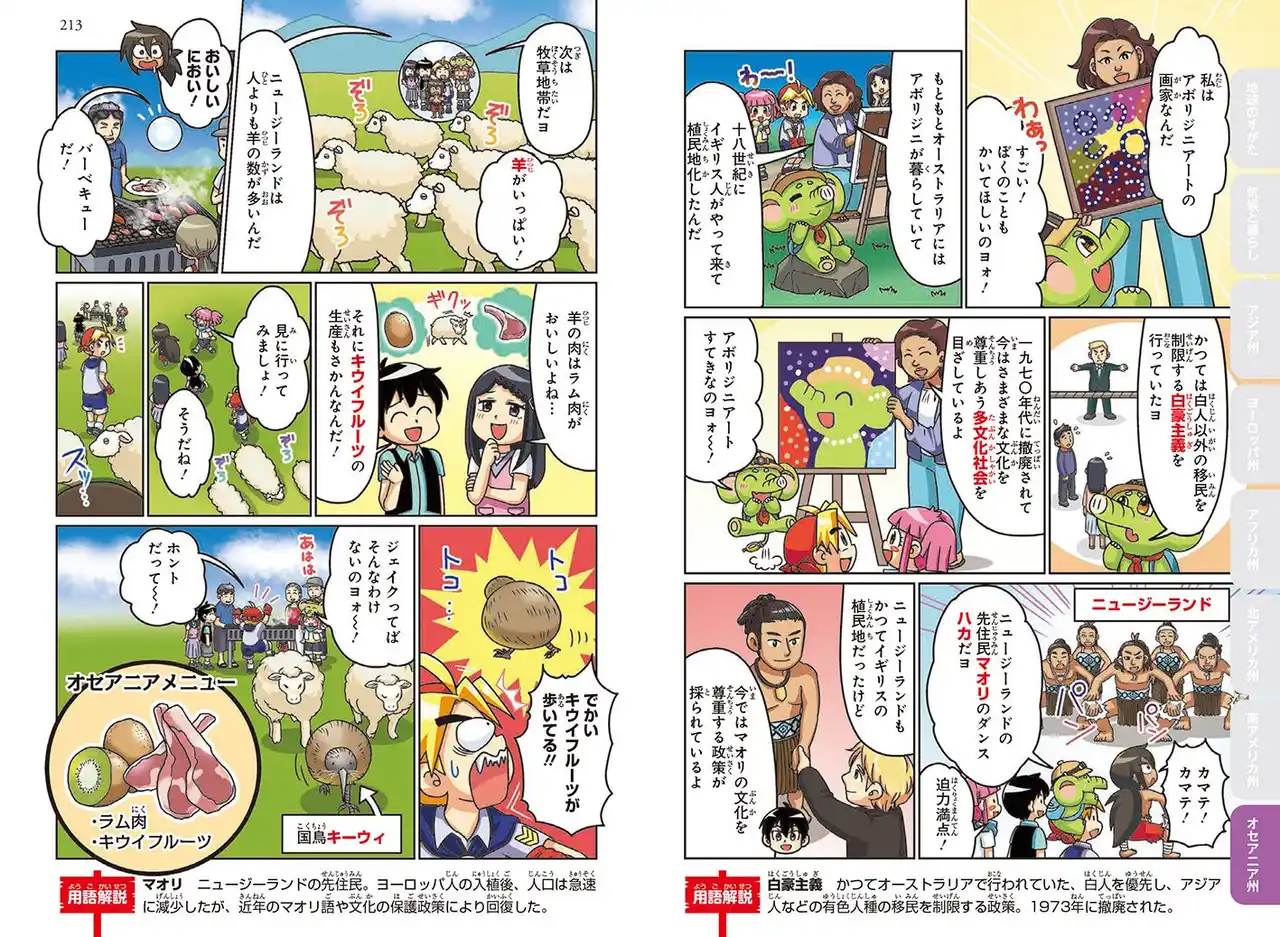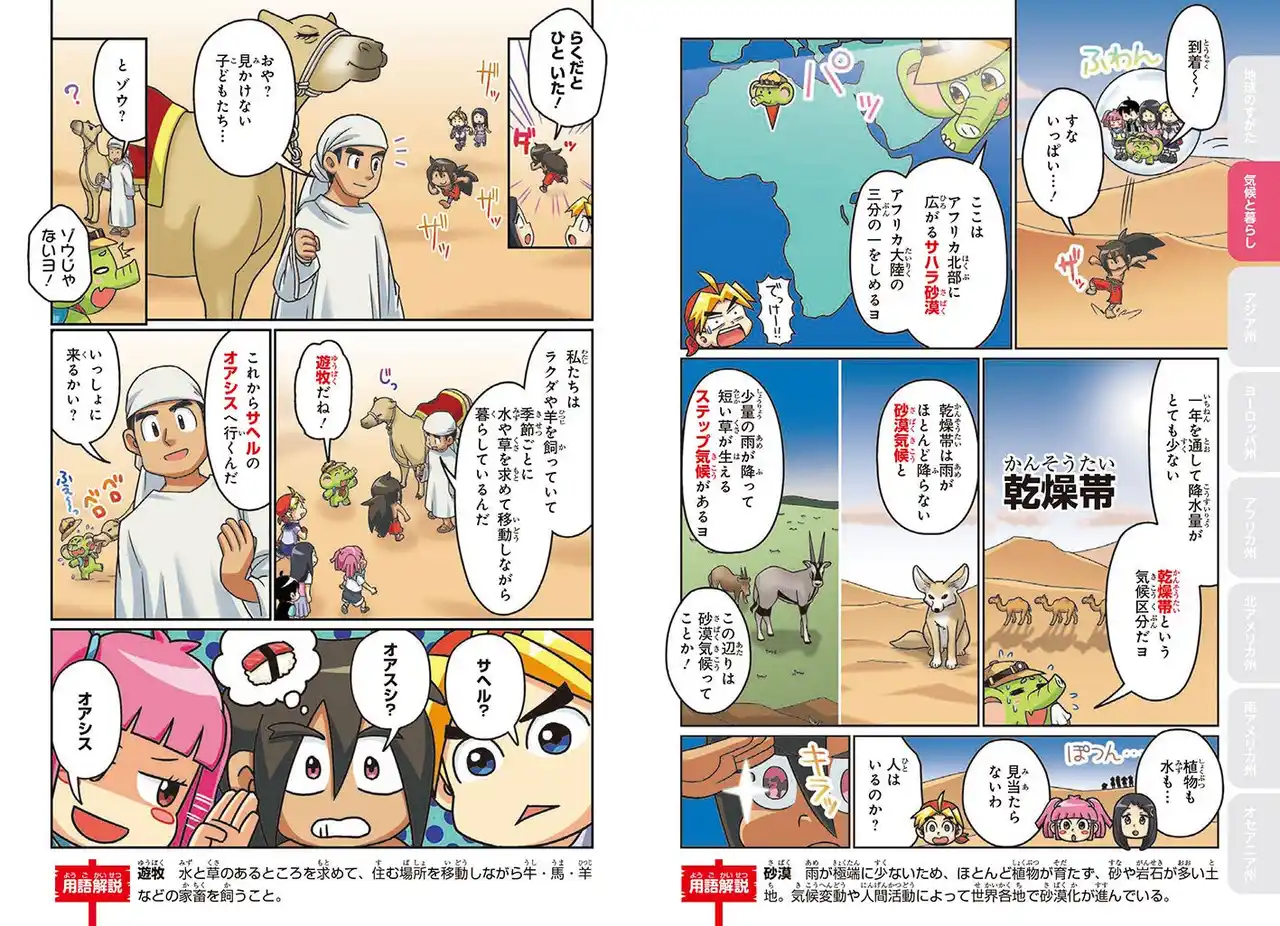 楽しく読み進めるうちに、気候、文化、各国の特色、時差といった地理の重要単元の理解が自然と深まります。 |