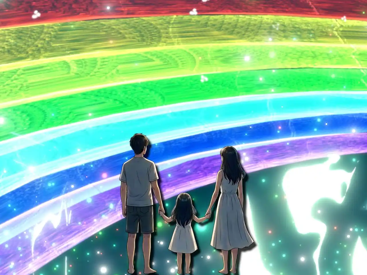 水中の虹が天へ伸び、記憶へ導くシーン(イメージ) |