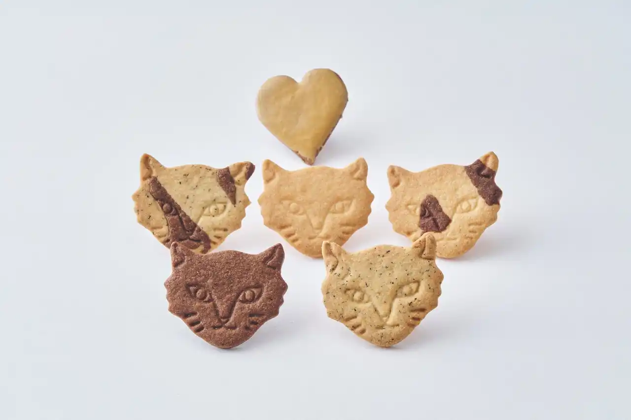 めずらしい柄や個性が光るミラクルキャットをモチーフに、発酵バターやカカオ、アールグレイを使用して、一枚一枚ていねいに焼き上げた5種類の手づくりネコクッキーを詰め合わせています。 |