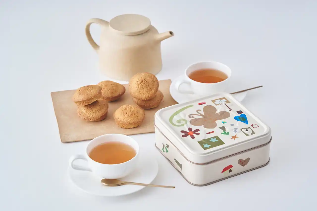 自分用にも手に取りやすい〈2個入缶〉。デスクにそっと忍ばせて頑張る自分へのごほうびティータイムに。気軽にそっと渡せるちいさな贈りものにも。食べ終えたあとは、眺めて小物入れに。 |