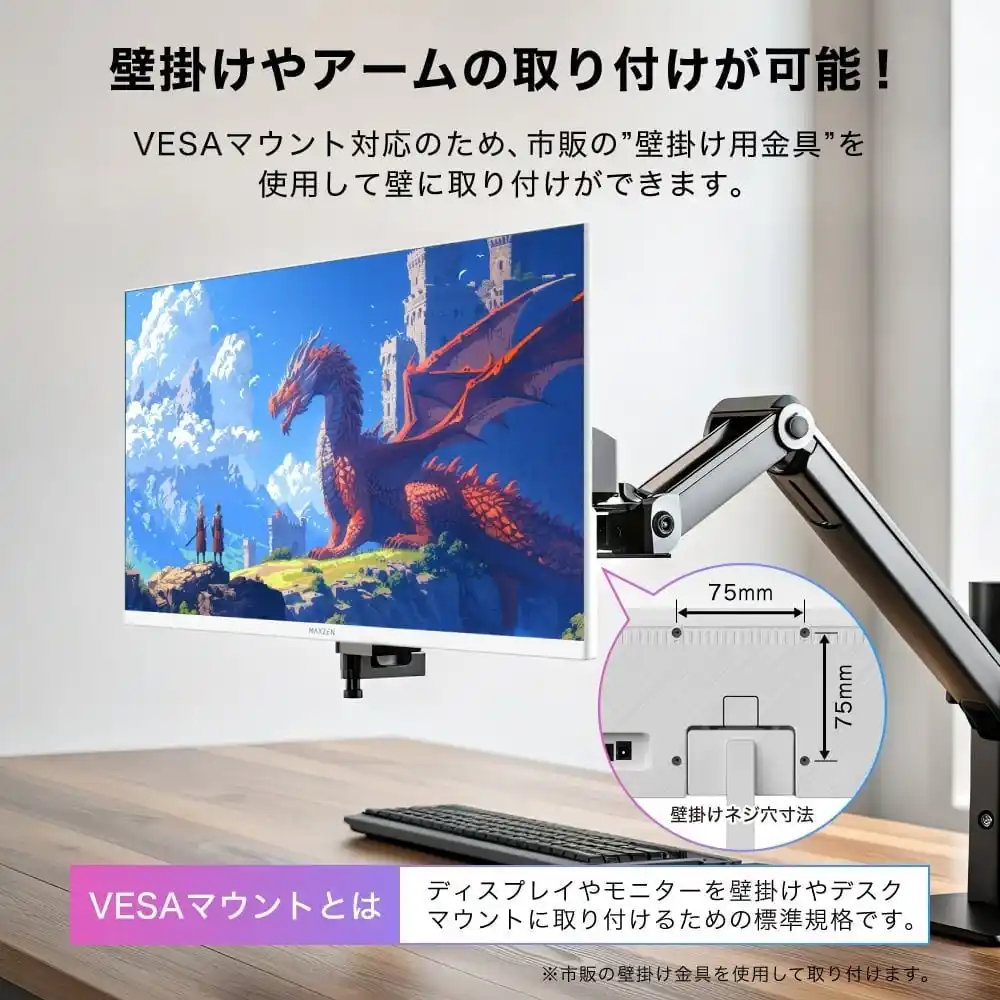 画面は見やすく前後にVESAマウント対応で壁掛けやアーム取り付け可能 |