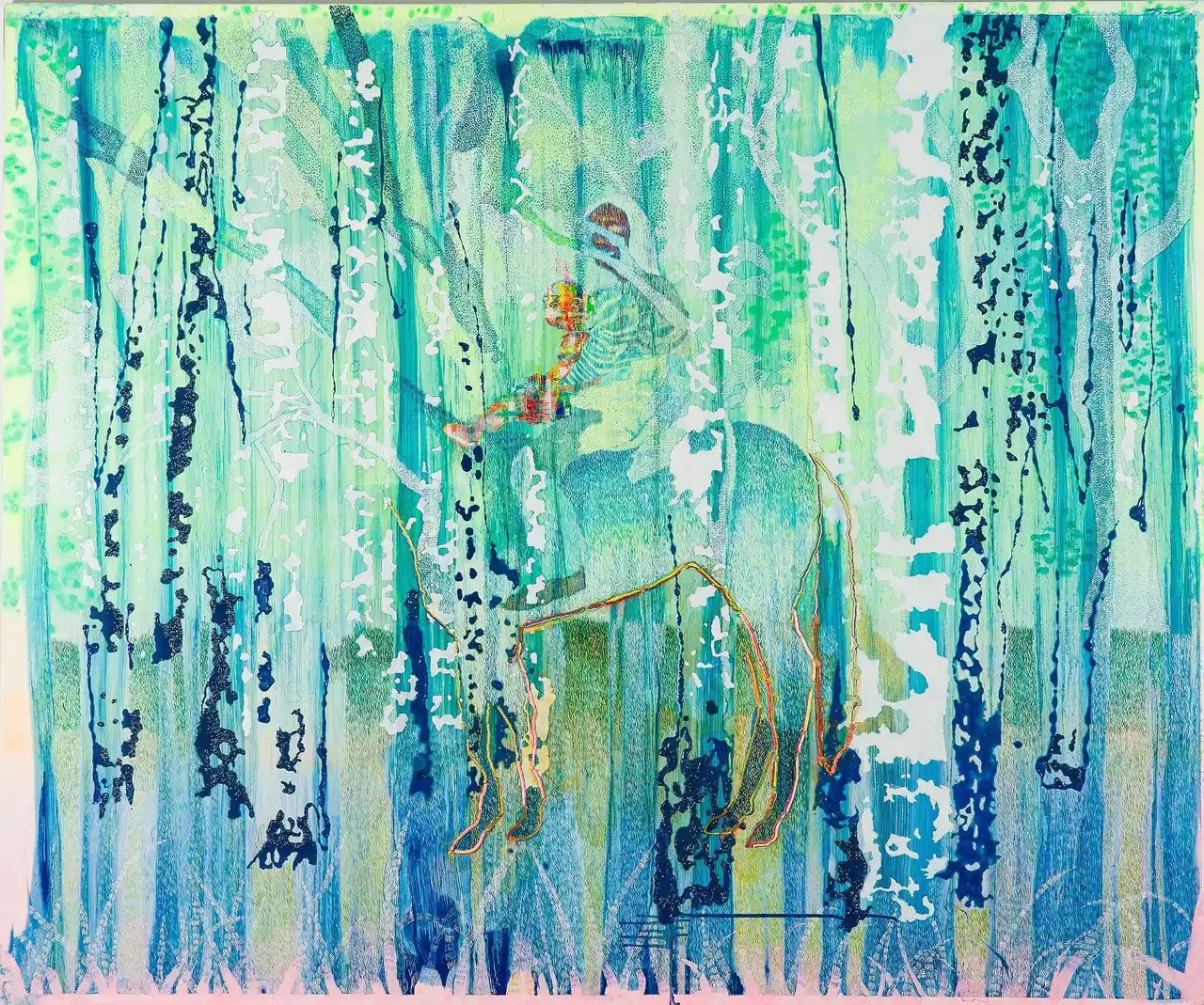 成山亜衣は、SNSやデジタルメディアを通じて大量の画像を見た後に意識の奥底に残存する、非物質的で輪郭の定まらない記憶の「像」を起点として制作を行う。成山が絵画に留めようとするのは、明確なイメージではなく、焦点を合わせようと視線が彷徨い続ける状態そのものである。物質感の強い絵具によって構成された「整わない画面」は、鑑賞者の知覚を画面上に滞留させ、像を探し続ける運動を引き起こす。 一見抽象的に見える画面に人や動物の気配が立ち上がるのは、作品がそれらを提示するからではなく、鑑賞者自身の知覚が意味を生成しようとする過程によるものである。 一方、遠藤仁美は風景画という形式を足場としながら、外界の再現にとどまらず、夢や記憶といった内的風景へと筆を進めてきた。繊細な色彩と多層的なレイヤーによって構成される画面には、時間の堆積や感情の揺らぎが折り重なり、像は単一の視点や時間に収束することなく、常に揺らぎ続ける。 近年の作品に見られるノイズや動性は、静止した風景の内部に複数の時空が共存しているかのような感覚を生み出し、鑑賞者を画面の奥へと引き込む。 本展において重要なのは、両者を抽象/具象といった形式的区分によって整理することではない。成山が内的記憶の曖昧さを平面上に留めるのに対し、遠藤は時間と感情の層を重ねることで、像が知覚のなかで深度を獲得していく過程を描き出す。両者に共通するのは、像が明確に定着する瞬間よりも、知覚が揺れ動き続ける状態そのものに、豊かな視覚体験が宿るという認識である。 鑑賞者は本展において、作品を一義的に理解する主体としてではなく、自身の記憶や感覚を通して知覚の生成に参与する存在として位置づけられる。成山亜衣と遠藤仁美の作品のあいだを往還する体験は、「見ること」が本来もつ時間性や不確かさ、そして能動的な性質をあらためて浮かび上がらせるだろう。本展は、絵画を通して立ち上がる潜在的な知覚の運動そのものに身を委ねることで、私たちが像をどのように見出し、経験しているのかを静かに照らし出す。 |
