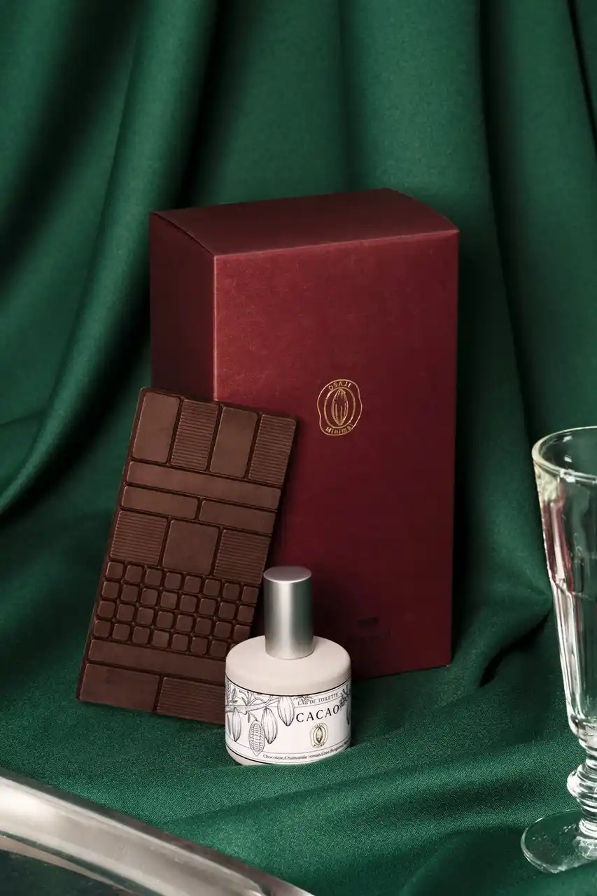 本コレクションでは、今回のために特別に開発されたフレーバー「板チョコレート/タンザニア70%」と、その味わいからインスピレーションを受けて生まれた「オードトワレ Cacao〈カカオ〉 2026」をセットにしました。 |