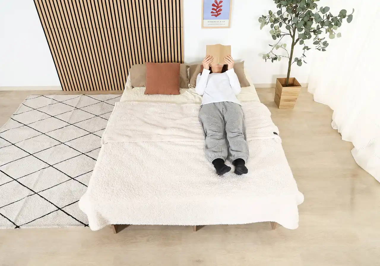 97×195cmのシングルサイズ。ワンルームにも取り入れやすく、コンパクトながら快適な睡眠環境をサポートします。(画像はシングルサイズ) |