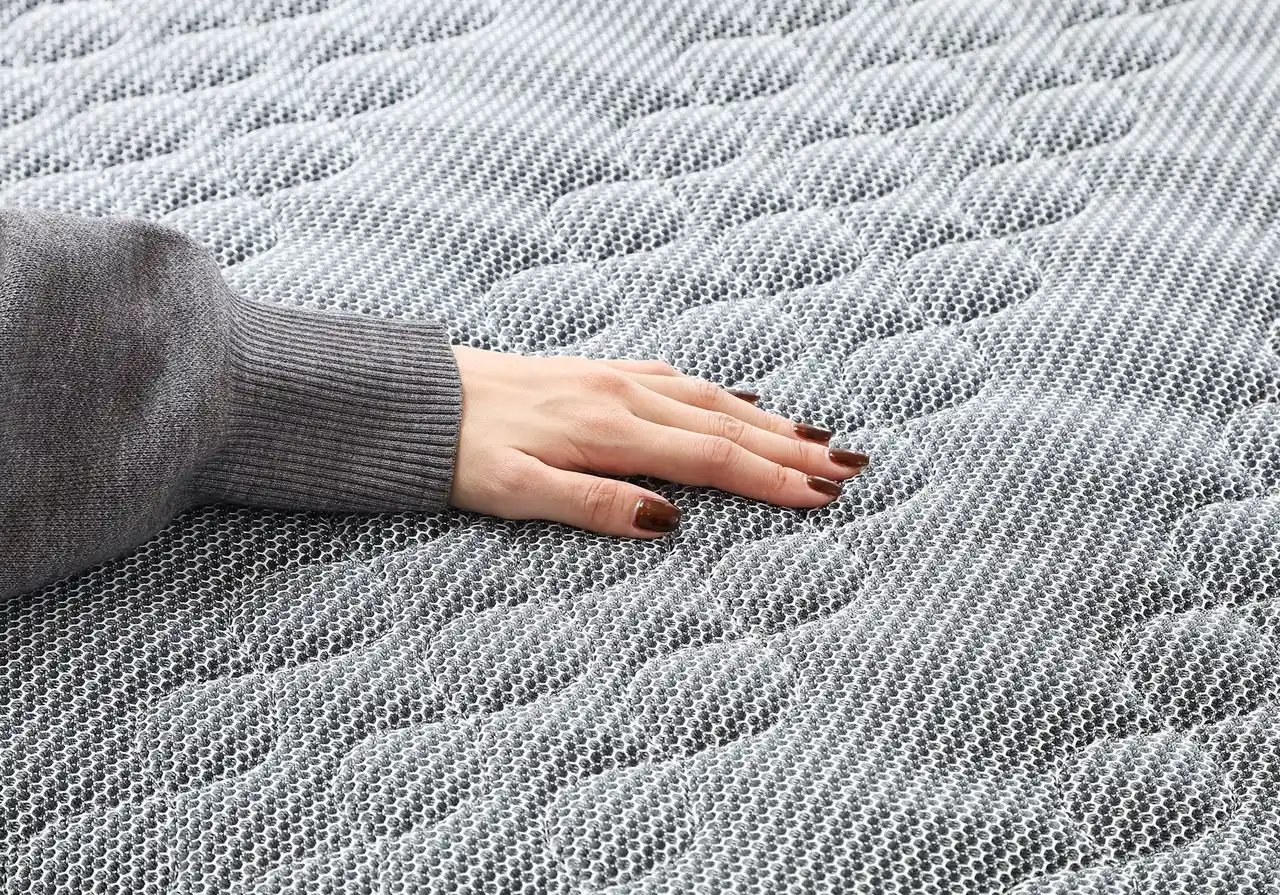 さらっとしたポリエステル生地に、鋼製コイルとウレタンフォームを組み合わせ、耐久性と心地よさを両立しています。 |