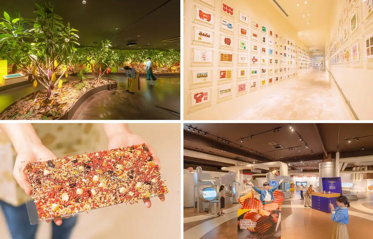 | “チョコレートを 旅しよう”をテーマに、ロイズのカカオ栽培からチョコレートづくりまでを、様々な展示や体験を通して楽しめる体験型施設。チョコレートワークショップでは約23×12cmのオリジナルの板チョコレートづくりを体験でき、お土産としても人気です。 | ||||||||||||
