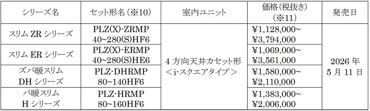 ※10 室内・室外ユニット、ムーブアイセンサーパネル、ワイヤードリモコンの組み合わせ形名 |