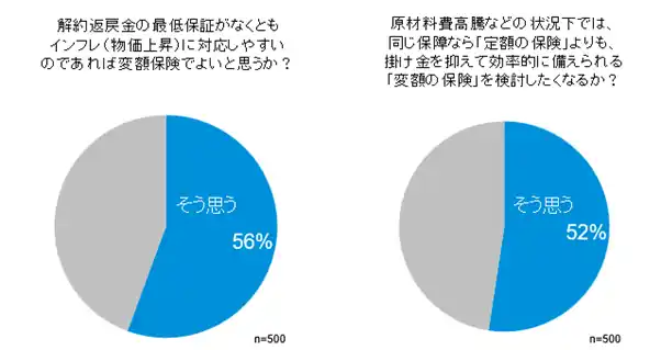 また生命保険についても、半数以上の経営者がインフレに対応しやすい変額型の特長を肯定的に評価しており、備えの選択肢が広がっています。 |