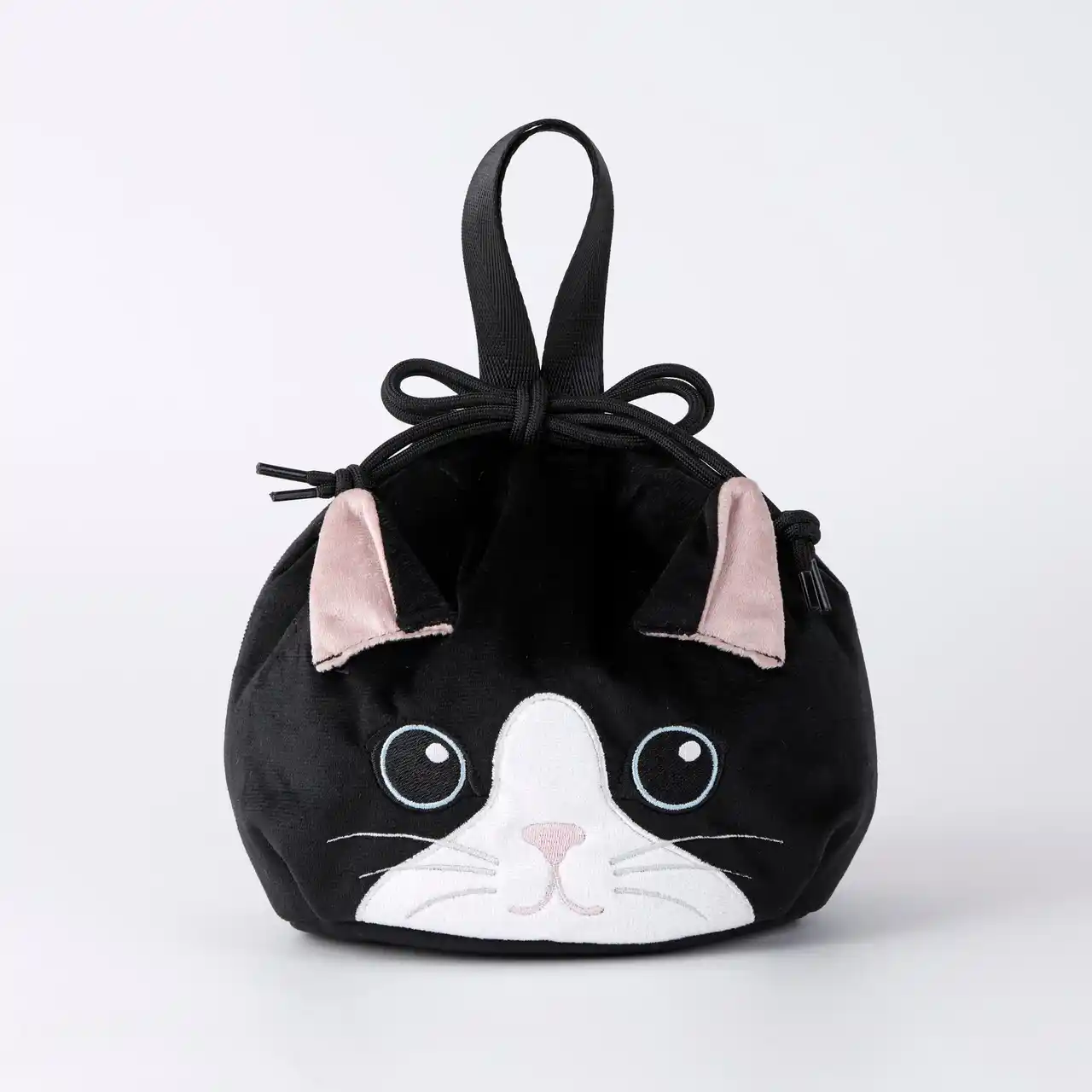 | 猫の顔を刺繍で表現した、可愛らしい「保冷巾着」 | |||||||||||||||||||