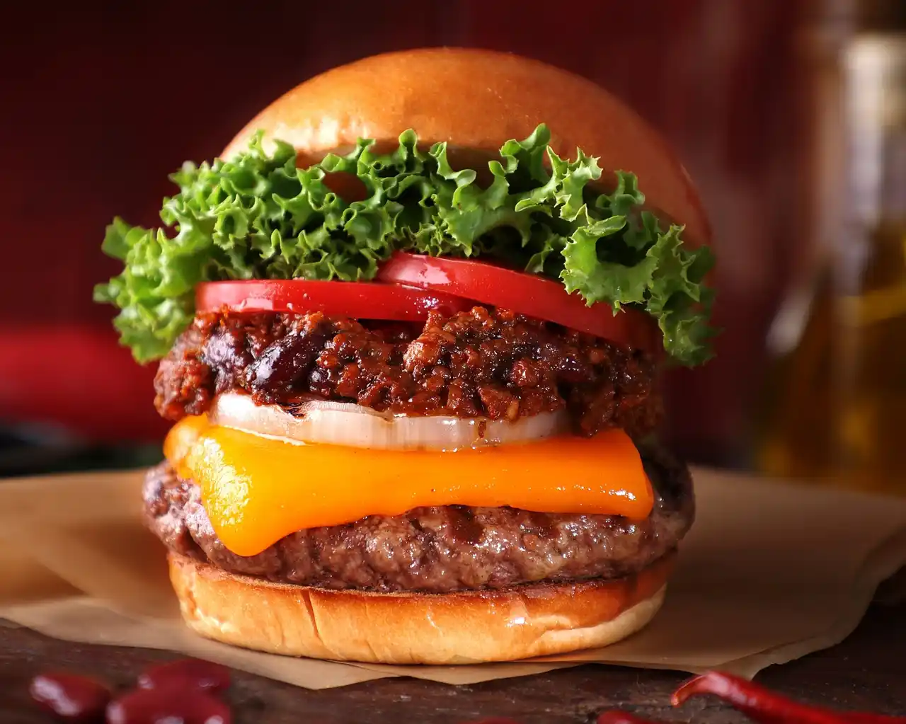 チリ厚切りチェダーチーズバーガー |